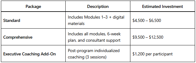 - Confirm dates, delivery format (in-person or virtual), and participant list.